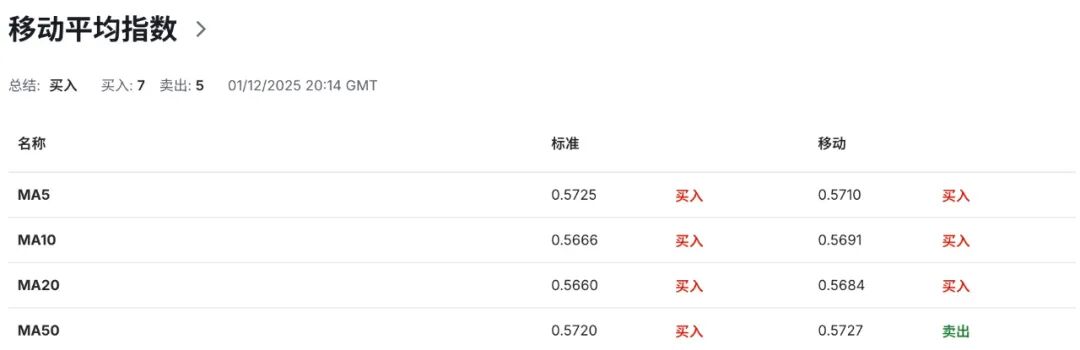 技术指标显示,日图级别上,纽币整体价格走势当前回升至布林带上轨附近区域展开新的多空拉锯,伴随RSI相对强弱指标攀升至55-45强弱平衡区上方,表明当前整体价格走势维持强势格局,多头动能仍然占据主动优势局面。同时反映量价关系同步呈现边际化多头修复效应,对汇价构成新的短期支撑力,并有望为其价格在短期内进一步突破布林带上轨所指向的0.5735动态阻力区域后延续上行保留潜在技术空间。布林带下轨当前则位于0.5570附近区域,为纽币短期价格走势提供动态支撑。然而,需要注意的是,布林带维持向下开口,表明纽币中期下行端动能仍然保持充沛,汇价偏向维持整体价格走势结构的“低位整理-再定价”窗口期。结合MACD显示DIFF-0.001、DEA -0.0029、MACD柱状图与双线仍然低于零轴,显示中期空头动能保持相对强劲,从而强化周期框架下的空头稳固局面。如若后续柱状图呈现负值缩窄并出现零轴上方的回测,则才将有望触发真实技术性以及趋势性反弹的概率。此外,50日以及100日均线系统呈现明显空头排列,近端曲线向下倾斜率限制纽币名义抬升概率,表明汇价周期性优势仍显著偏向空头一侧。若汇价可成功突破布林带上轨动态阻力区域,则才将有望为纽币提供更为坚实技术反弹底座,并为汇价进一步看涨预留潜在技术空间。此外,布林带中轨当前位于0.5650附近区域构成纽币短期价格走势多空力量以及强弱格局核心分化枢纽,如若纽币位于布林带上轨附近区域承压回落,并回收至布林带中轨下方,则需防范价格易受“高位回撤-下轨测试”牵引。
